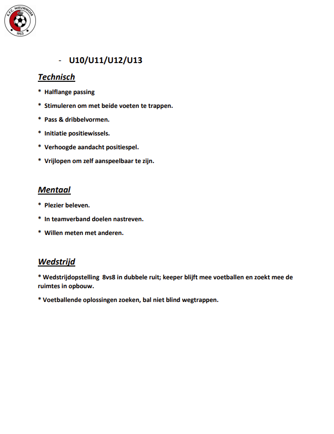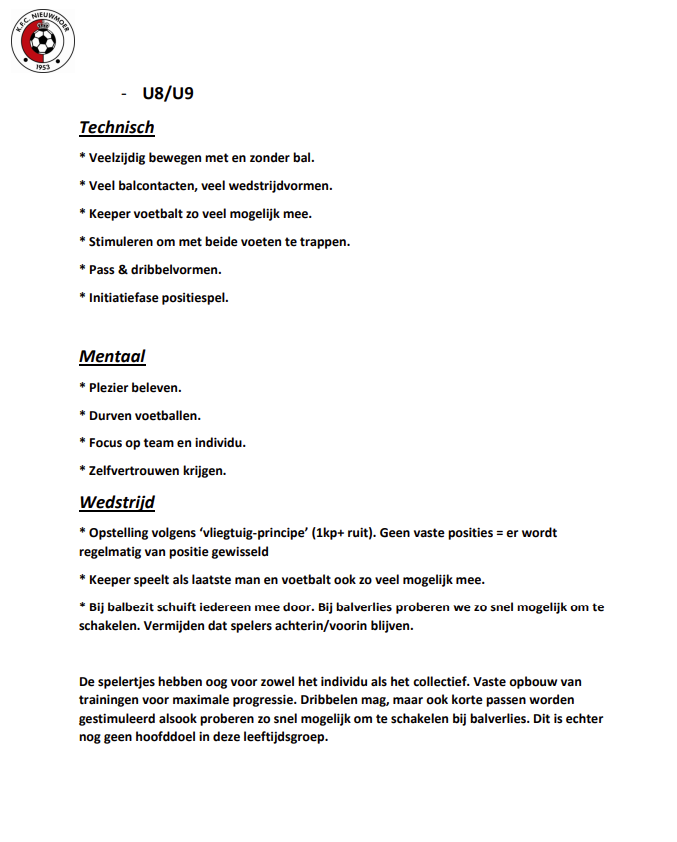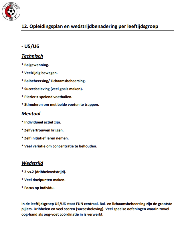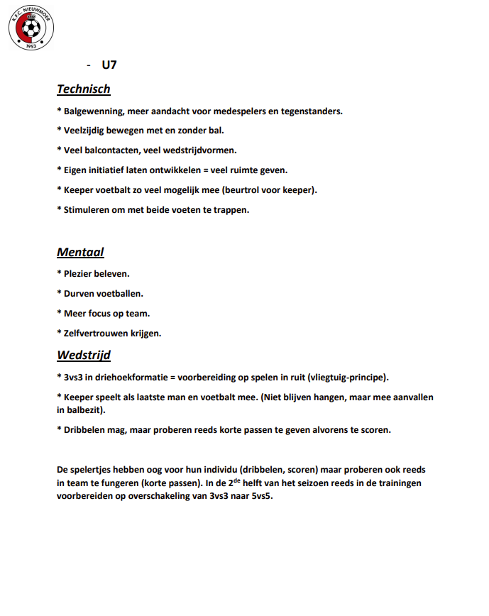 Hieronder vindt u het opleidingsplan en wedstrijdbenadering per leeftijdsgroep. De volledige versie van onze jeugdwerking kan u terugvinden op de hoofdpagina 'Jeugdwerking' .